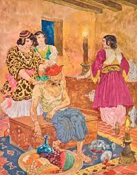 فقالت الأخرى: “ويلك وهل عند سيدنا علم بحالها، فقد وضعت له منومًا في قدح الشراب ،الذي يشربه كل ليلة، فينام ولا يعلم لأين تذهب، وتغيب حتى الفجر، ثم تأتي في الصباح وتوقظه وكأن شيئًا لم يكن”.