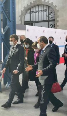 كما استعرض الجانبان سبل التعاون والتنسيق المشترك في إطار استضافة مصر لقمة المناخ العالمية في شرم الشيخ في نوفمبر من العام الجاري، خاصةً في ضوء الدور البارز للدولتين في مجال قضايا البيئة والمناخ، حيث أعرب الرئيس الفرنسي عن خالص تمنياته بنجاح مصر في استضافة هذا الحدث الدولي الضخم، في حين أوضح الرئيس أن تلبيته لدعوة الرئيس الفرنسي للمشاركة في قمة ”محيط واحد“ تعكس مدى حرص مصر على التعاون مع فرنسا في هذا المجال، أخذًا في الاعتبار أن مصر تولي أهمية قصوى لحماية البيئة البحرية، وذلك من خلال الجهود الوطنية المختلفة في مجالات إقامة المحميات الطبيعية، والحفاظ على التنوع البيولوجي، والحد من التلوث البحري.