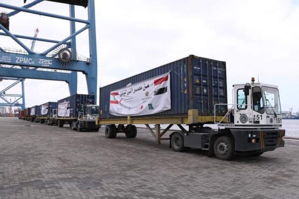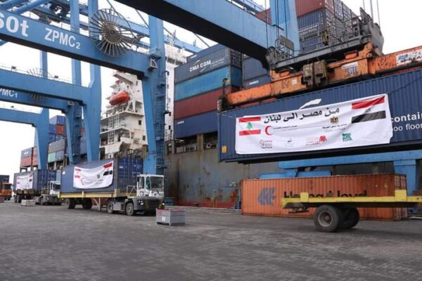 غادرت ميناء دمياط، صباح اليوم، سفينة مساعدات مصرية إلى الأشقاء في لبنان، بتوجيهات من الرئيس عبدالفتاح السيسى، رئيس الجمهورية.